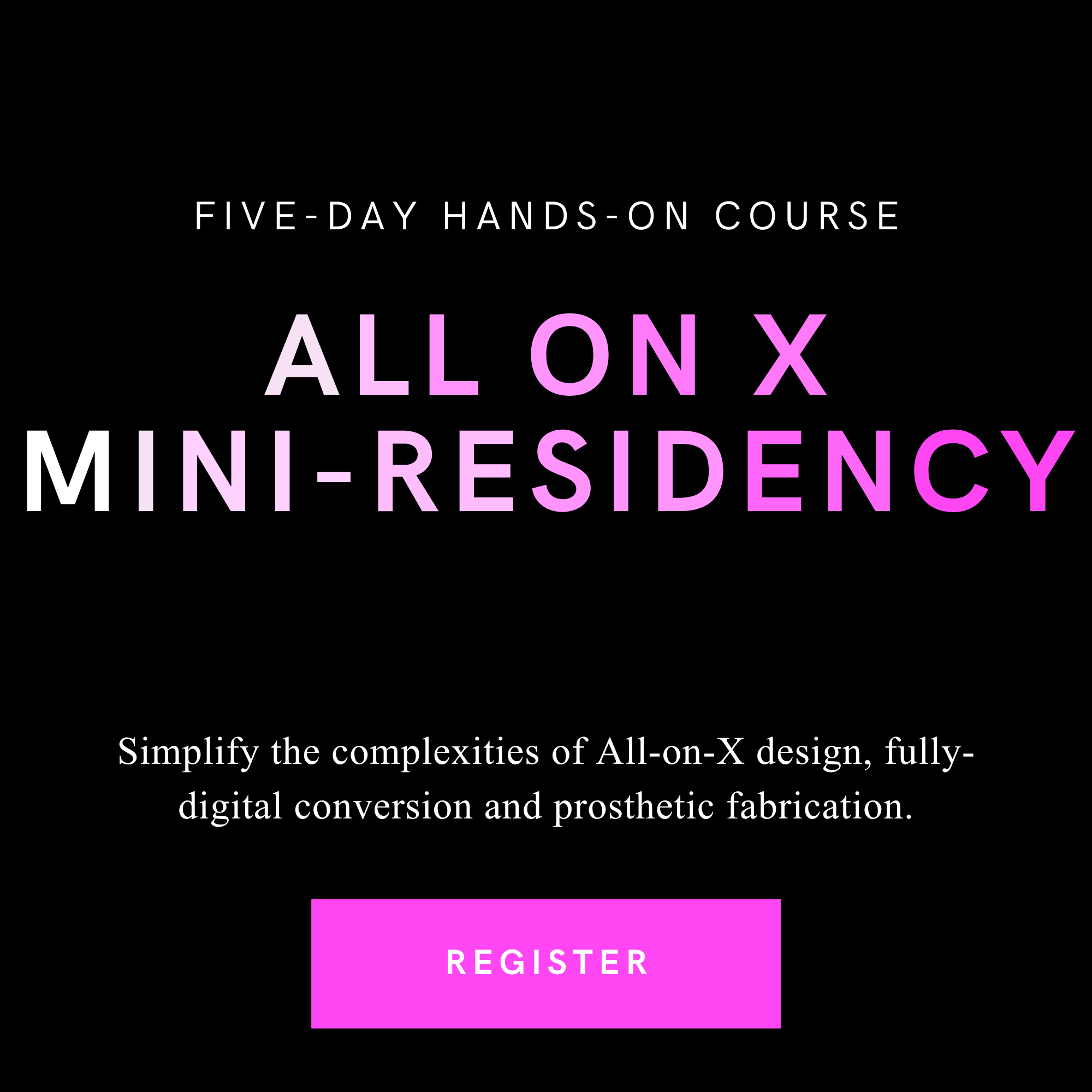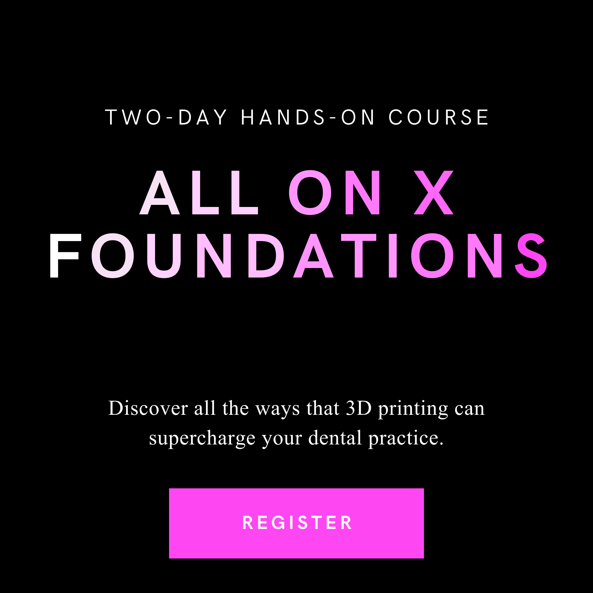 Advancements in digital technology and 3D printing have unlocked new efficiencies in how we approach All-on-X implant restorations. Learn how to leverage the latest in scanning technique, photogrammetry and grammetry, and 3D printing to make same day fully digital prosthetic conversions a reality for your practice that will maximize post surgery biomechanical adaptability. We’ll also cover a repeatable process for zirconia characterization that will make implementation of in-house fabrication of high level final prosthetics achievable for any practice.